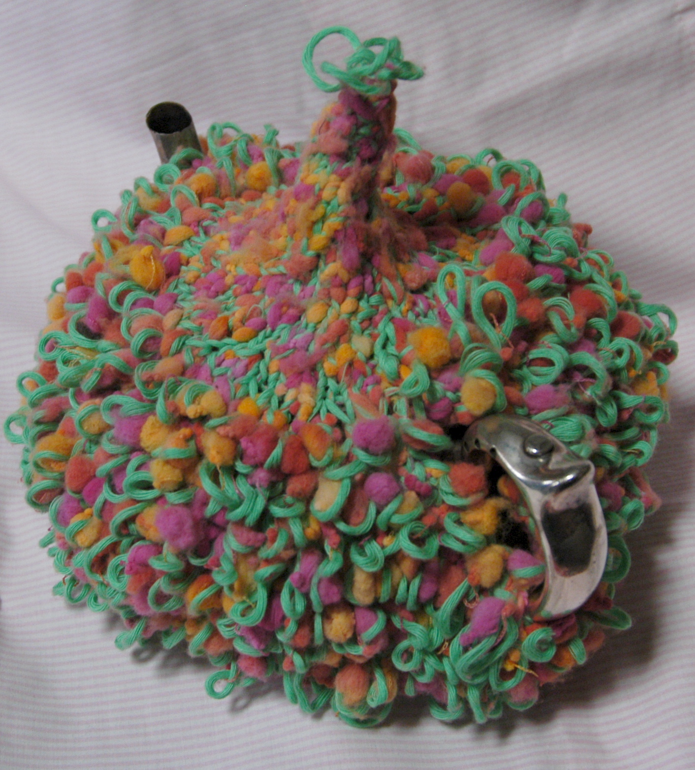 The first tea cosy (below) is sitting over a Robur "Perfect Teapot"- it reminds me of a Dr Seuss book...